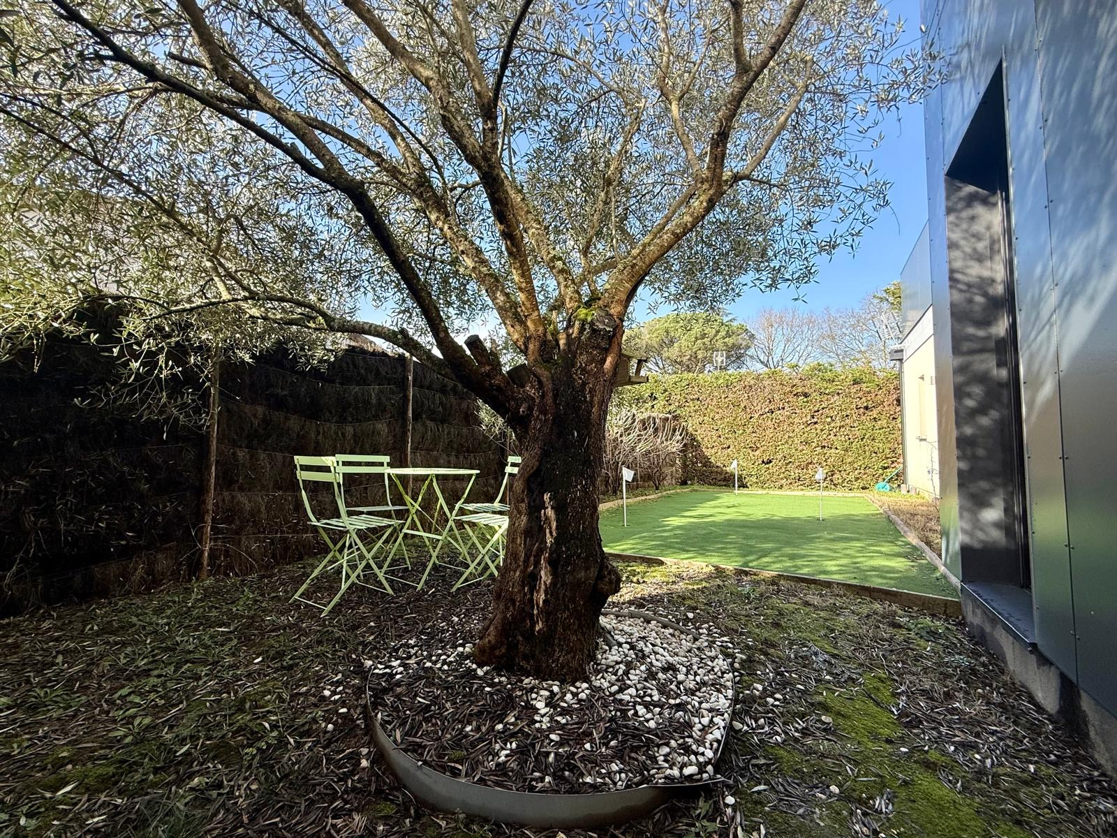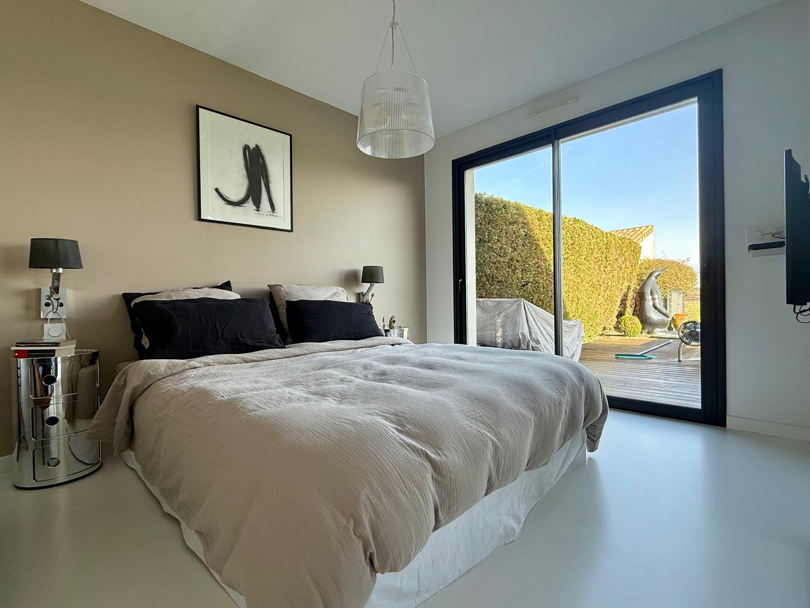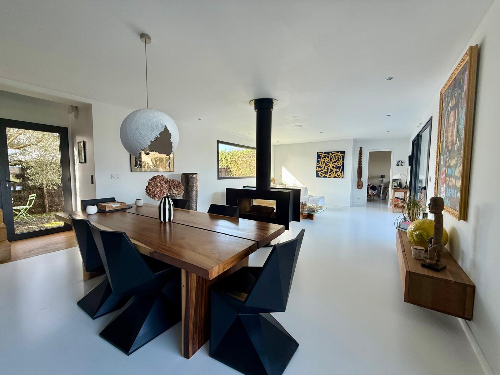 SAINT CAPRAIS DE BORDEAUX - À seulement 20 minutes de Bordeaux, cette très belle maison contemporaine récente séduit par son architecture racée, ses volumes généreux et son ouverture permanente sur l’extérieur. Dès l’entrée, la luminosité s’impose comme le fil conducteur de la maison : de larges baies vitrées offrent une connexion naturelle avec les extérieurs et invitent à une véritable projection dedans/dehors. La pièce de vie, aux dimensions remarquables, accueille une cuisine haut de gamme au design soigné, pensée comme un véritable élément décoratif, idéale pour recevoir et partager.