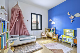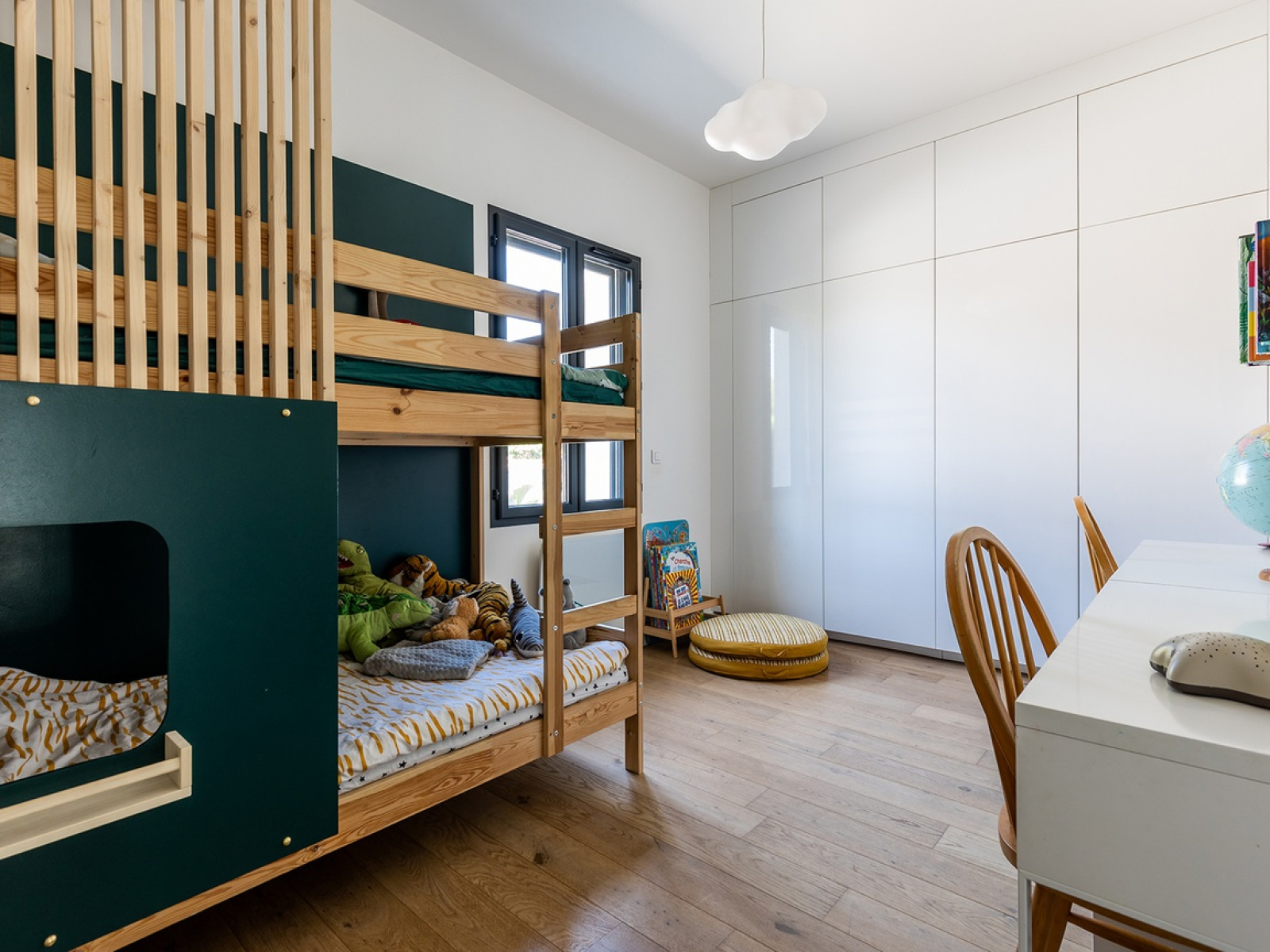 L'étage offre de nombreuses possibilités. Dans la configuration actuelle, ce grand plateau dessert une salle de jeux/salle TV et un bureau très cosy mais il peut aisément être aménagé en chambre et salle d'eau supplémentaire.