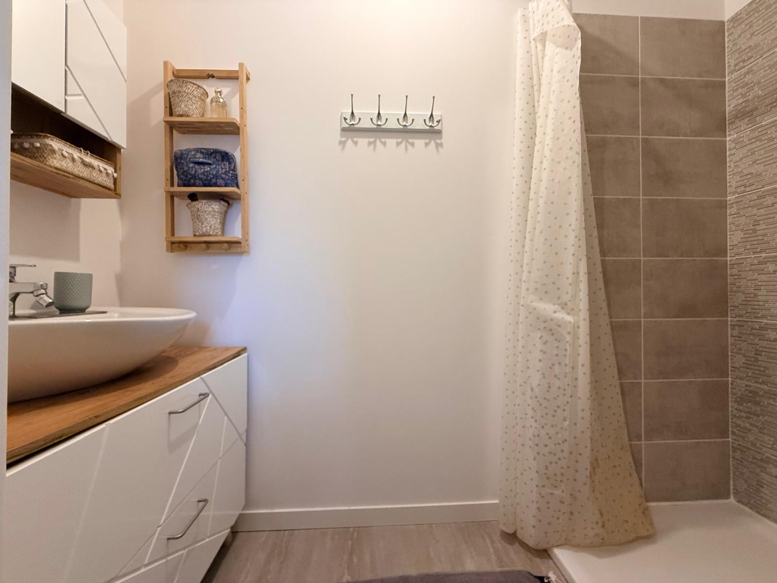 Dès l’entrée, vous apprécierez sa belle pièce de vie lumineuse avec cuisine ouverte, pensée pour des moments conviviaux au quotidien. Cet espace s’ouvre sur un jardin privatif d’environ 40 m², idéal pour profiter des beaux jours, partager des repas en extérieur ou créer un espace détente à votre image. Une salle d’eau complète le rez-de-chaussée.